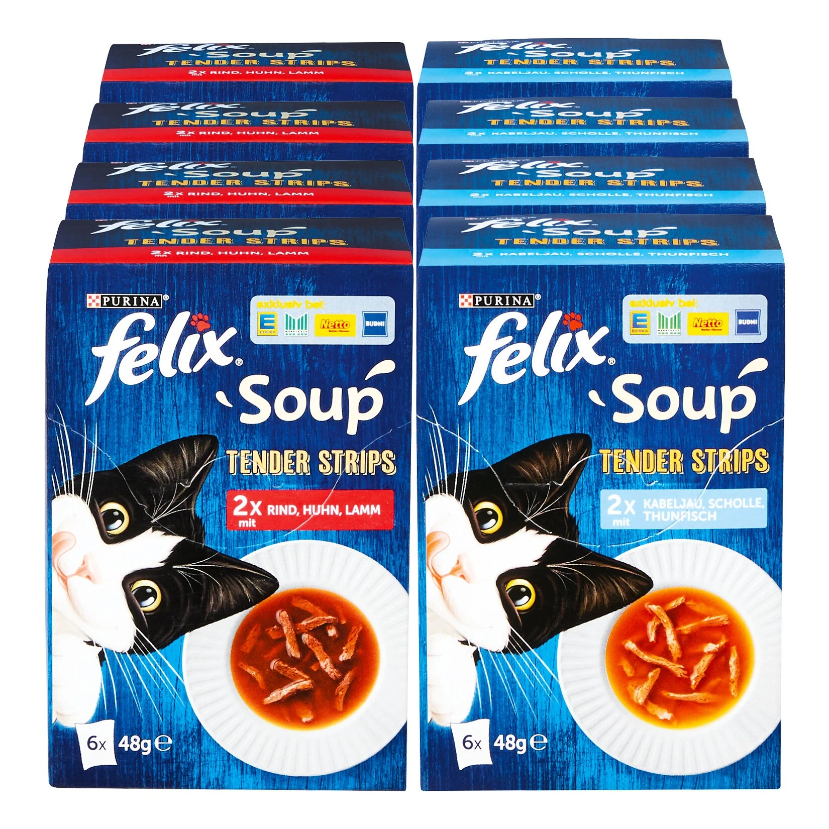 FELIX® Soup Tender Strips ist eine unwiderstehliche Auswahl aufregender Rezepte für deine Katze