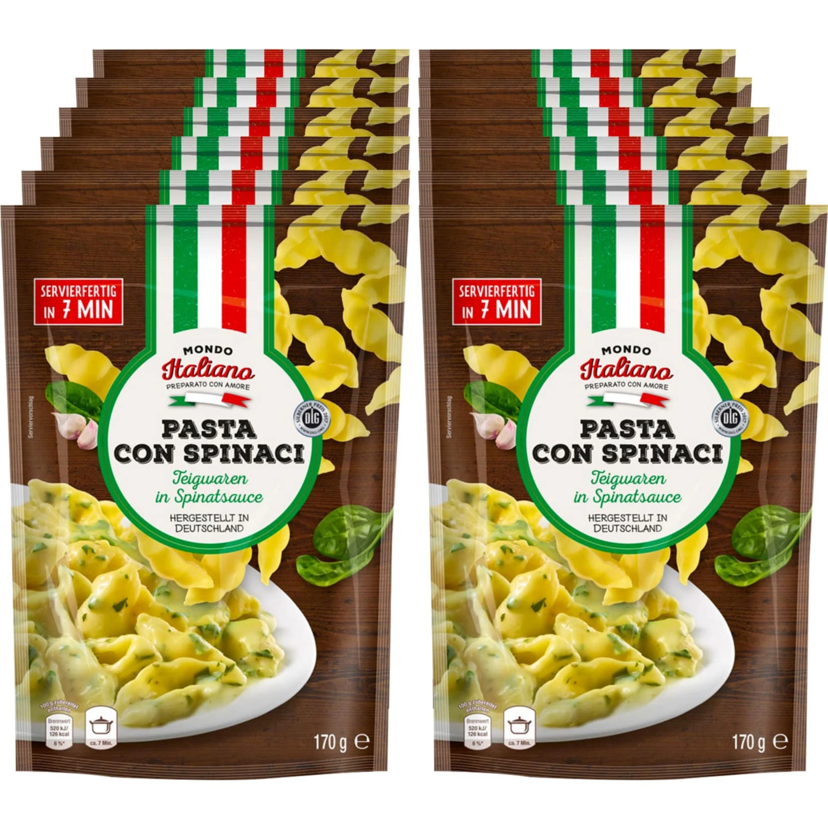 Pasta con Spinaci aus Hartweizengrieß und Spinat aus EU und Nicht-EU.