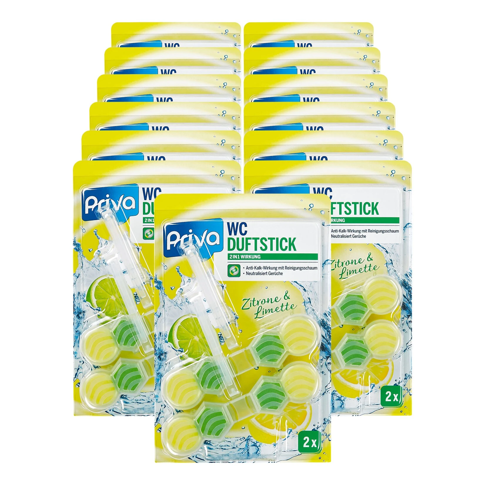 Der Priva WC Duftstick Zitrone & Limette wirkt kraftvoll gegen Kalk und sorgt für einen langanhaltenden frischen Duft. Die Power-Formel mit Reinigungsschaum bekämpft Schmutz & Kalk und reinigt das WC-Becken gründlich. Mit jedem Spülgang sort der Duftstick für einen langanhaltenden frischen Duft nach Zitrone und Limette.